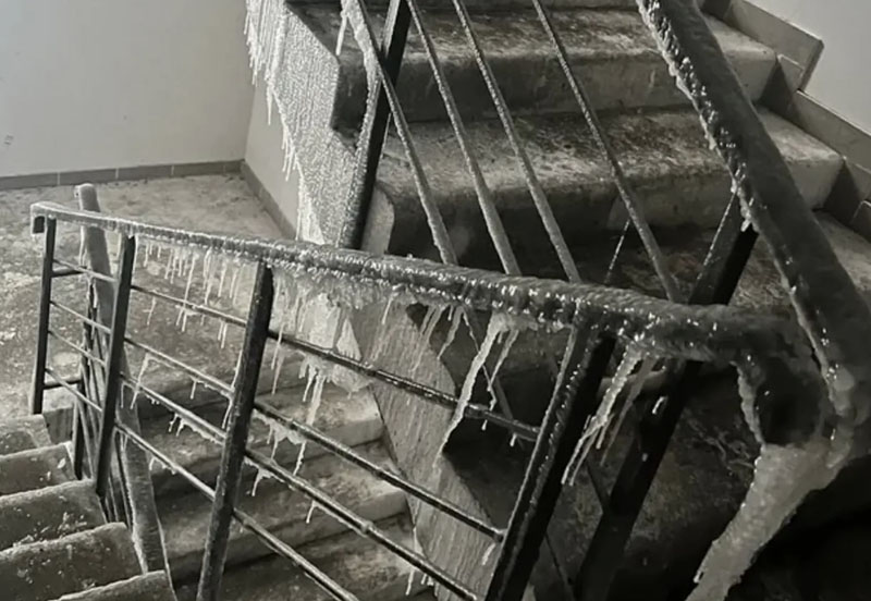Po bombardavimų iš pirmadienio į antradienį Kyjive be šilumos liko daugiau nei 5630 daugiabučių namų, viena miesto pusė visai neturi vandens, dėl trūkusių vamzdžių varvekliai susiformavo net laiptinėse...