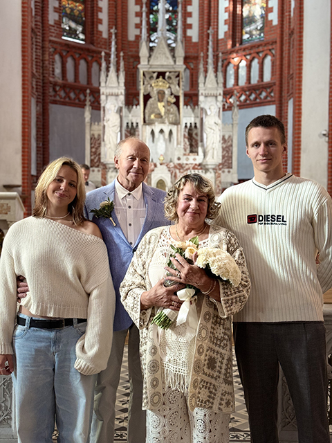 Laimingoji šios šeimos diena – rugpjūčio 23-ioji, šiemet, kaip ir 1975-aisias, buvo šeštadienis. Nors, užuot sukvietę plačią giminę ir draugus prie šventinio stalo, praėjusį savaitgalį auksinių vestuvių paminėti N. ir A. Mikučiai išvyko prie jūros, Palangoje jie sulaukė ir abiejų dukrų su šeimomis, kurios tarsi netyčia paklausė, ar mama nenorėtų nueiti į Šv. Mišias Palangos Švč. Mergelės Marijos Ėmimo į Dangų bažnyčioje. O prie jos įteikė mamai gėlių puokštę, įsegė į švarko atlapą žiedą tėčiui ir pakvietė iš naujo pašventinti jų santuoką.