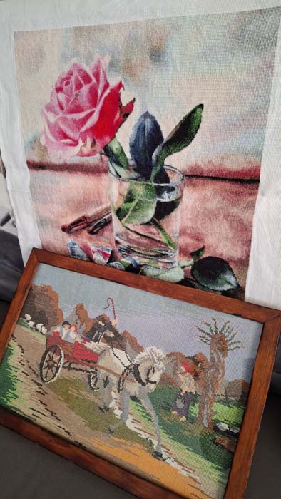 „Susidomėjimas siuvinėjimu paskatino ir skaityti – pradėjau bibliotekoje ieškoti informacijos apie rankdarbius, o kuo labiau gilinausi, tuo daugiau norėjau žinoti, padaryti geriau. Taip, matyt, tas rankdarbių ratas manyje ir užsisuko. Iš pradžių ėmiausi mažų darbelių – siuvinėjau aplikacijas atvirukams ir jas dovanojau. Po truputį pasklido žinia apie mano rankdarbius. Įgudusi jau ryžausi ir didesniems darbeliams – pagalvėlėms, pusmetrio ploto paveikslams“, – pasakoja traksėdiškė.