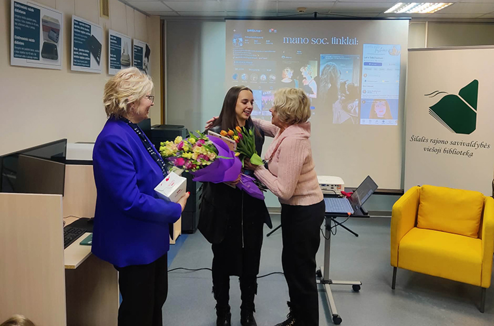 Šio susitikimo iniciatorė bibliotekos Komunikacijos ir inovacijų skyriaus edukatorė-vyr. bibliotekininkė Loreta Šimutytė-Balčiūnienė įteikė gėlių ir padėką Gabijai už profesionaliai parengtą paskaitą bei gražų bendradarbiavimą.