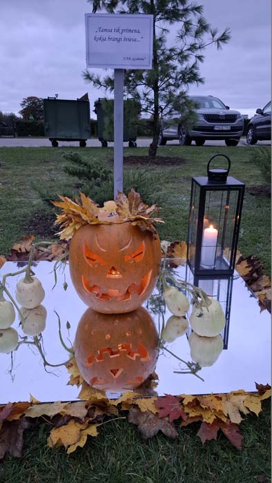 Įspūdingiausiai, žinoma, atrodo tie moliūgai, prie kurių prisilietė išmaniosios technologijos, bet ir dekoruoti rankomis kėlė ne mažesnį susižavėjimą. Bene daugiausiai dėmesio sulaukė laidojimo namų „Gedmina“ moliūgas, įsitaisęs ant veidrodžio, o jo viršugalvį puošė išmintinga citata.
