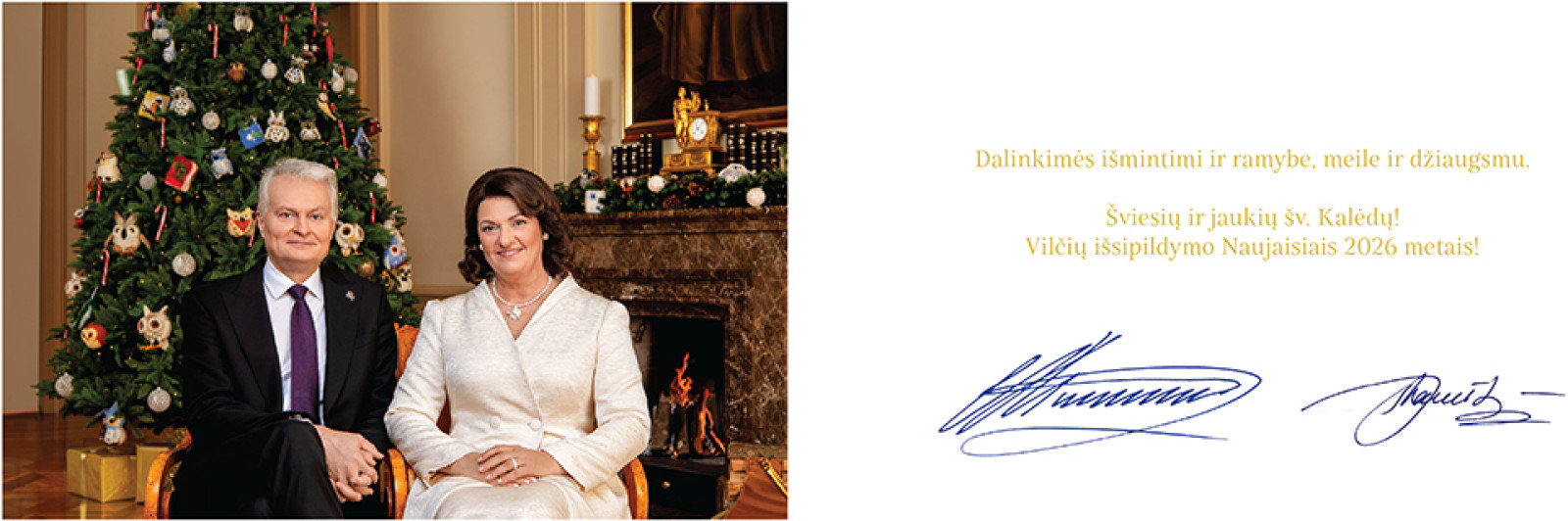 Lietuvos Respublikos Prezidento Gitano Nausėdos ir pirmosios ponios Dianos Nausėdienės šv. Kalėdų ir Naujųjų Metų sveikinimas Gruodžio 23, 2025 Atnaujinta Penktadienis, 26 Gruodžio 2025 21:09 Daugiau šioje kategorijoje: « Klebonas Virgilijus Poškus: „Leiskime Dievui būti arti“ Naujieji jau čia pat »