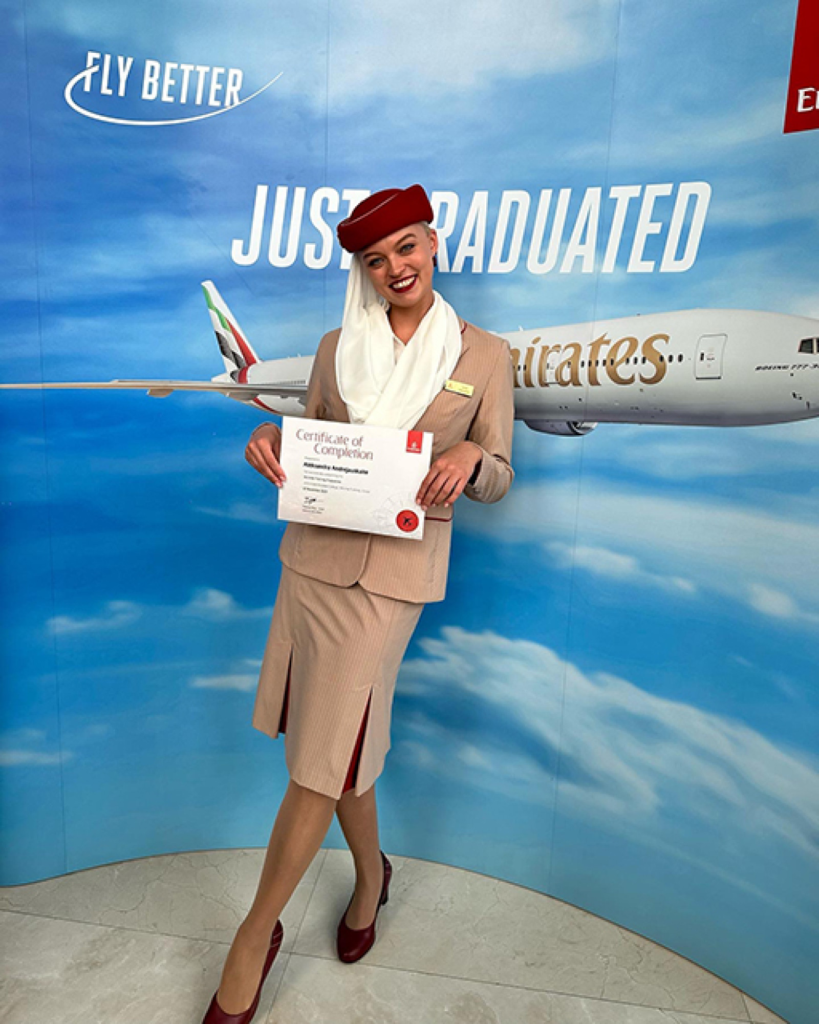 Kartais gyvenimas pasisuka taip, kaip mažiausiai tikiesi. Šilališkė Aleksandra Andrejauskaitė studijavo Lietuvos muzikos ir teatro akademijoje šokio pedagogiką ir niekada nesvajojo apie Dubajų ar skrydžių palydovės darbą. Bet jos kelias į vieną prestižiškiausių pasaulio oro linijų prasidėjo nuo sustojimo.