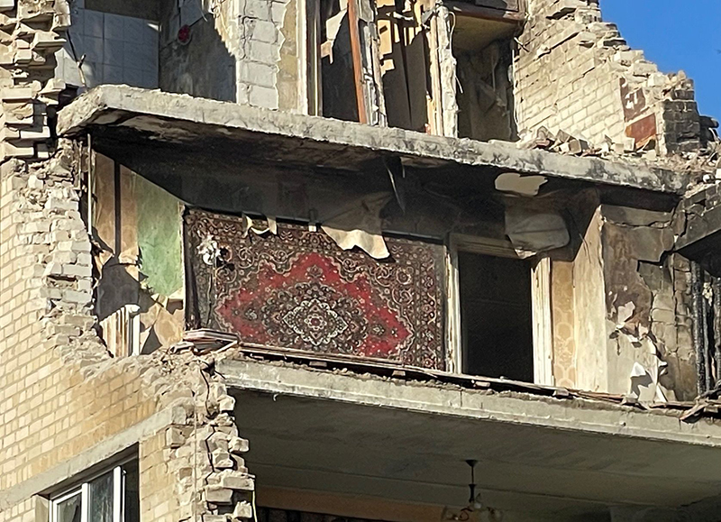 „Matote ketvirtame aukšte atsivėrusią buto sieną su kabančiu kilimu? Ten ir gyveno Irina. Susipažinome institute: aš esu juristė, iki šiol dirbu administracijoje, o ji buvo radioelektronikos žinovė, atlikdavo tyrimus. Irina už mane dviem metais vyresnė ir silpnesnės sveikatos, todėl prieš keletą metų išėjo į pensiją. Susitikdavome dažnai – jos arba mano bute, eidavome pasivaikščioti. Ji labai nerimavo dėl fronte kovojančio sūnaus, jis keletą kartų buvo sužeistas. Tačiau pirmiau žuvo ne sūnus, o jo motina. Sakykite, kaip tikėti Maskvos taikingumu, jei ji kasdien žudo civilius? Ar tai ne terorizmas?“ – klausė raudodama N. Timoševskaja.